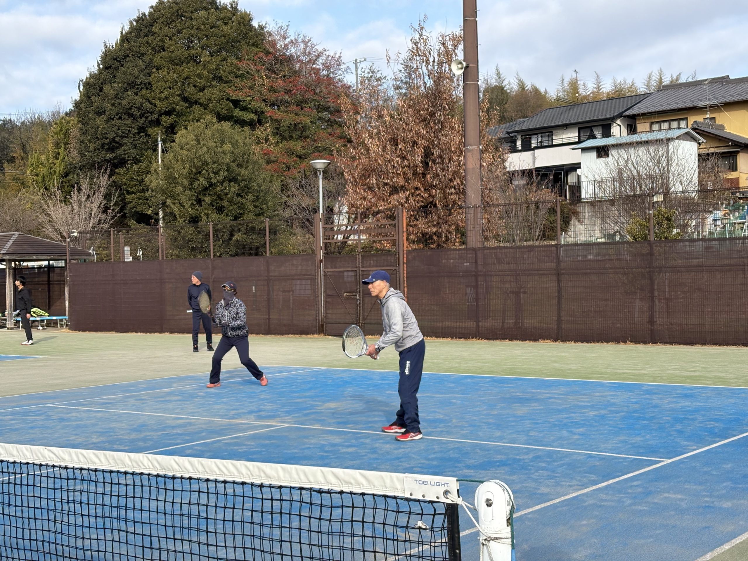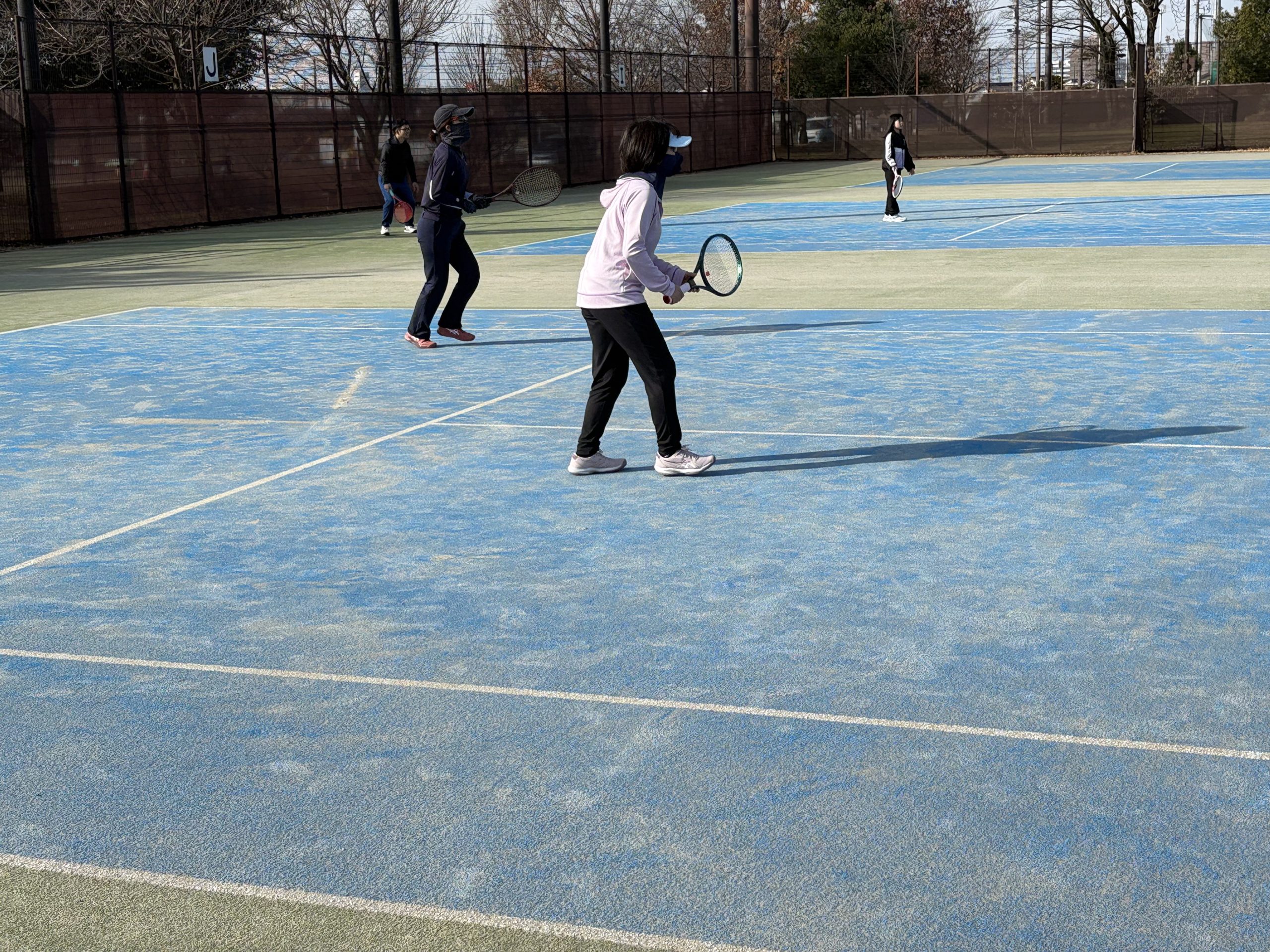 1月12日(日)は3人だけでしたが、隣のコートの方にご協力いただき、4人で楽しいダブルスプレーができました。ありがとうございます!
