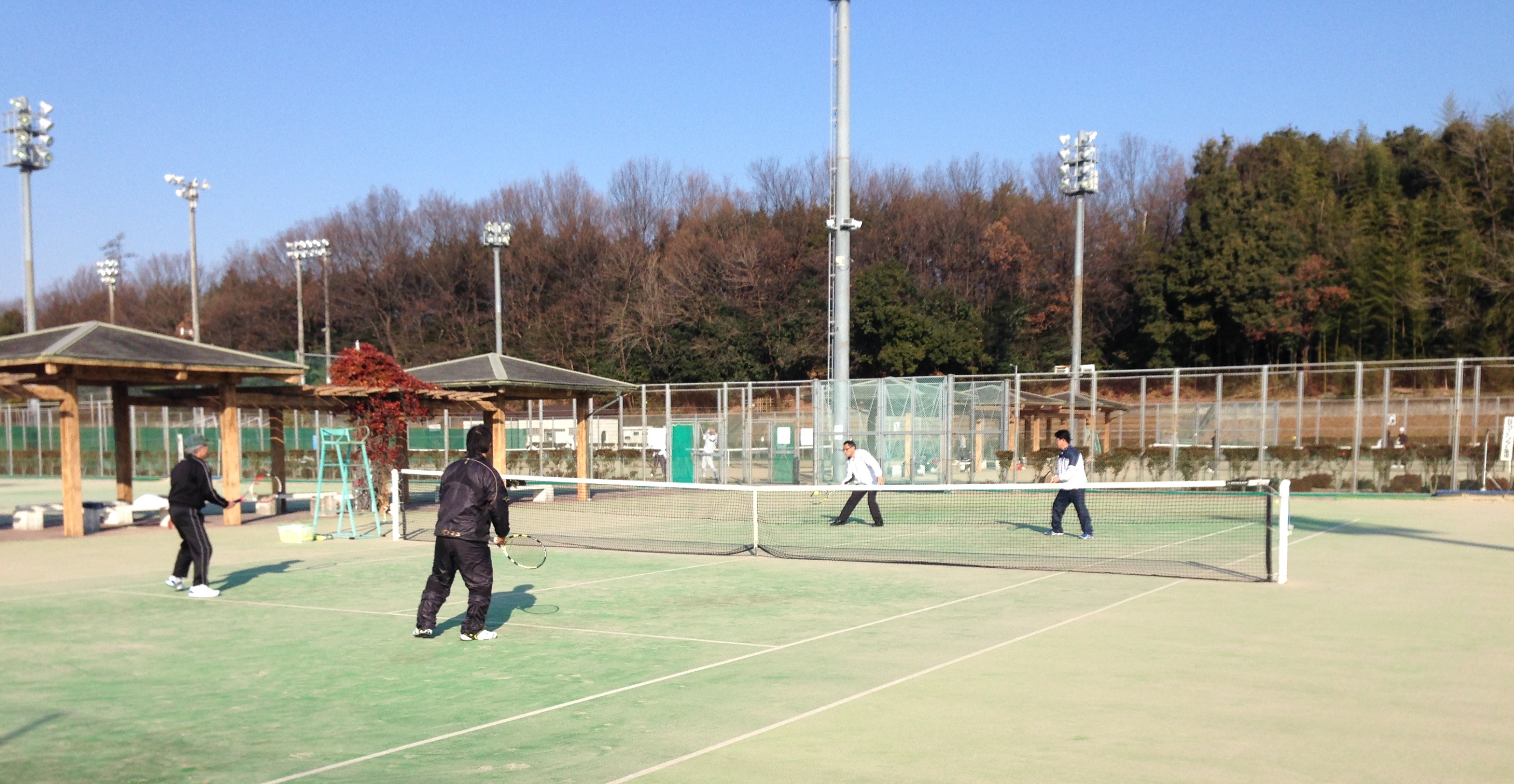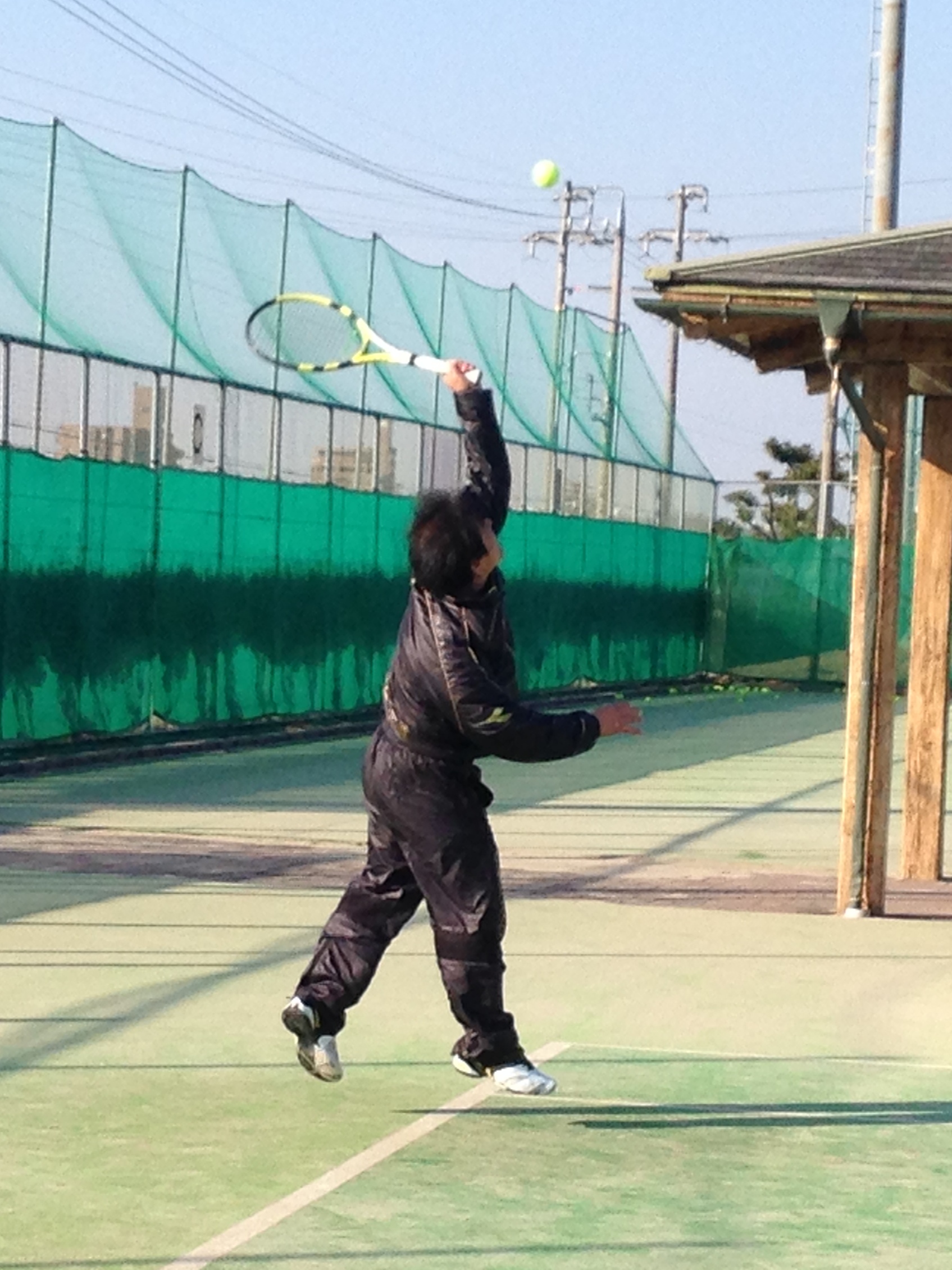 2014年1/4 ULTCレポート 良い天気のなかで2014年の初打テニスで良い汗をかきながら楽しむことができました! 隣りのコートでプレーを楽しんでおられたご家族にお願いしてiPhoneで、参加して頂いた皆さんと一緒に記念写真を撮ってもらいました。 FukudaさんとSadakaさんのプレー姿も素晴らしいですね!