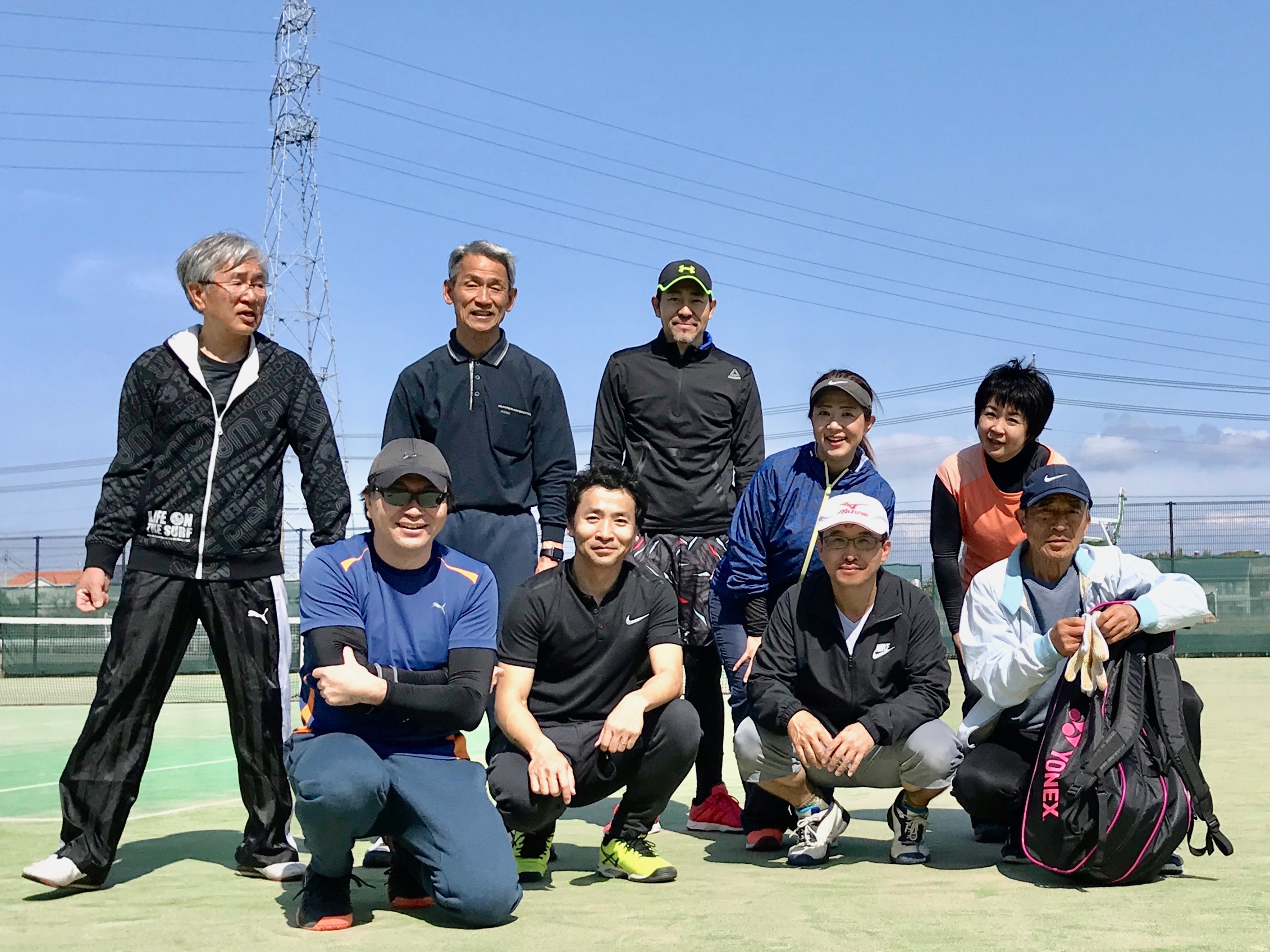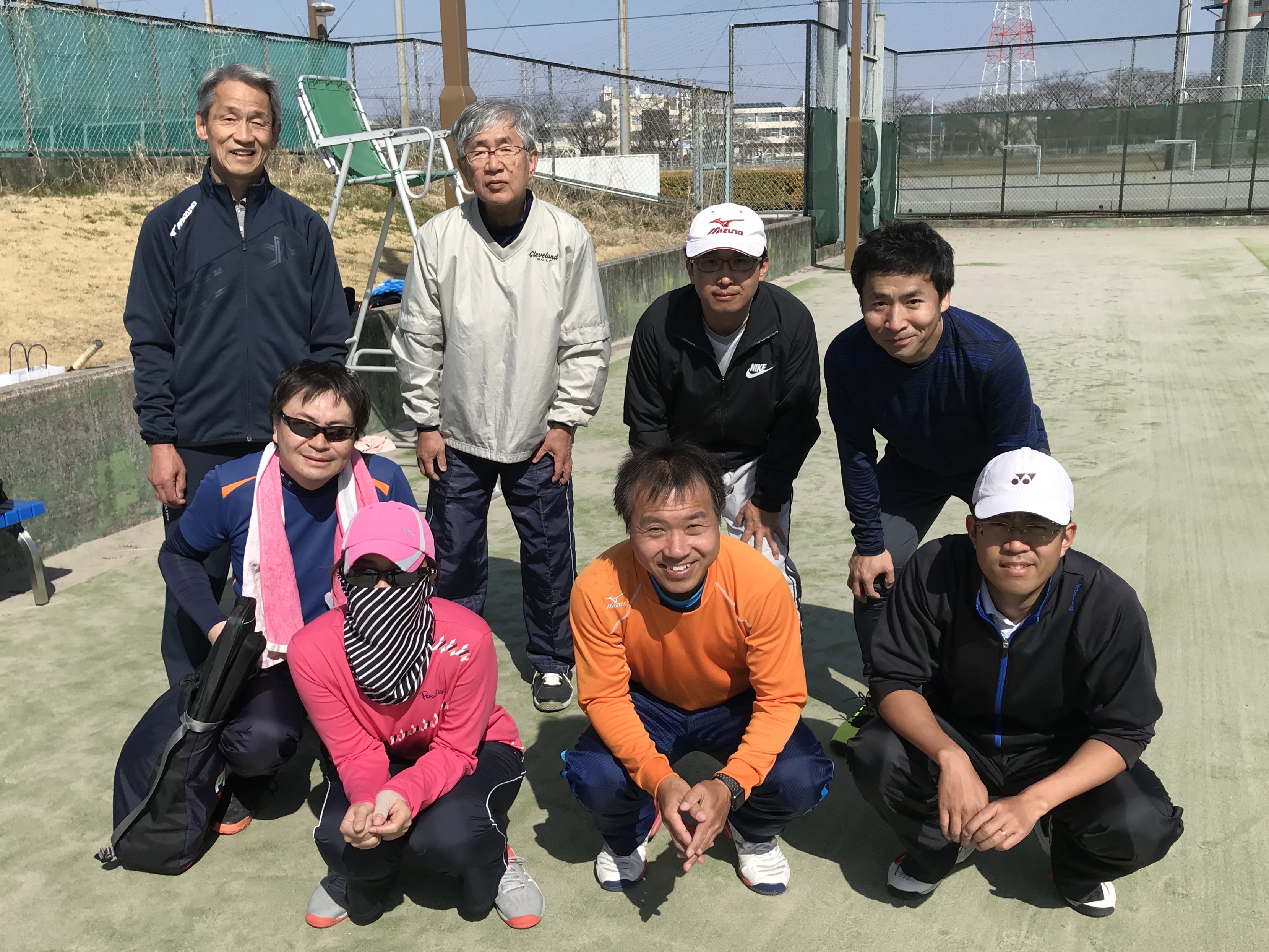 3/11 ULTC レポート 素晴らしい青空の中で、2面コート8名の参加で休憩なしの3時間プレーを楽しめました。皆さんのプレー姿の写真を1枚も撮れず、今日はこの集合写真1枚だけです! 皆さんありがとうございました!