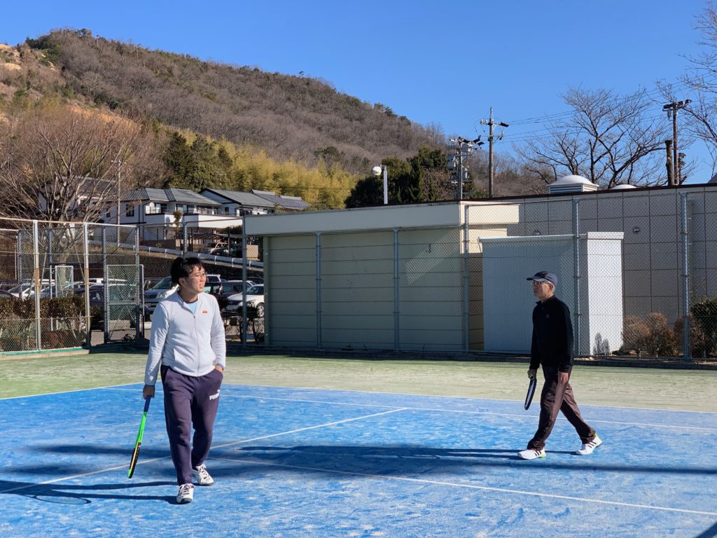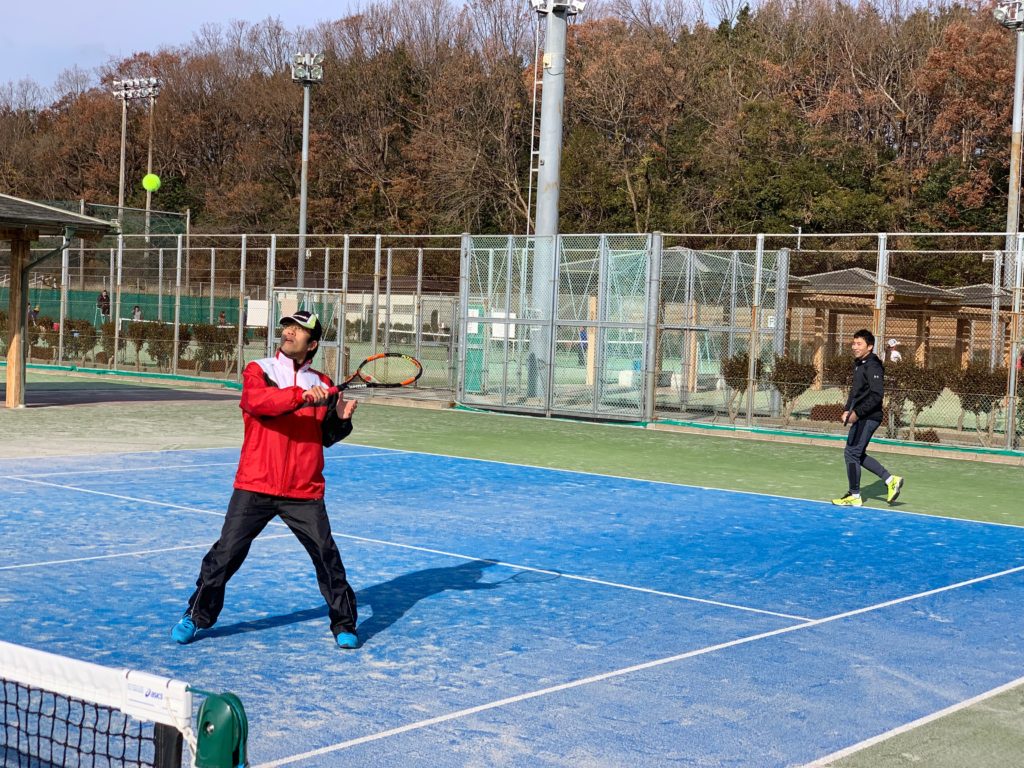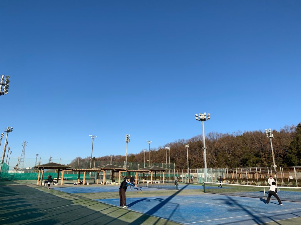 今日は素晴らしい快晴の中でまぶしい太陽の光線を浴びながら、楽しいプレーができました。(雲一つない真っ青な空です、風もなく最高のテニス日和でしたね!)