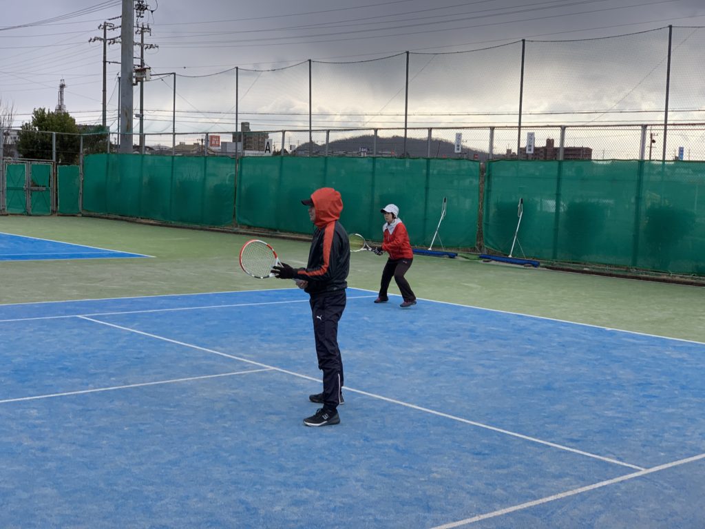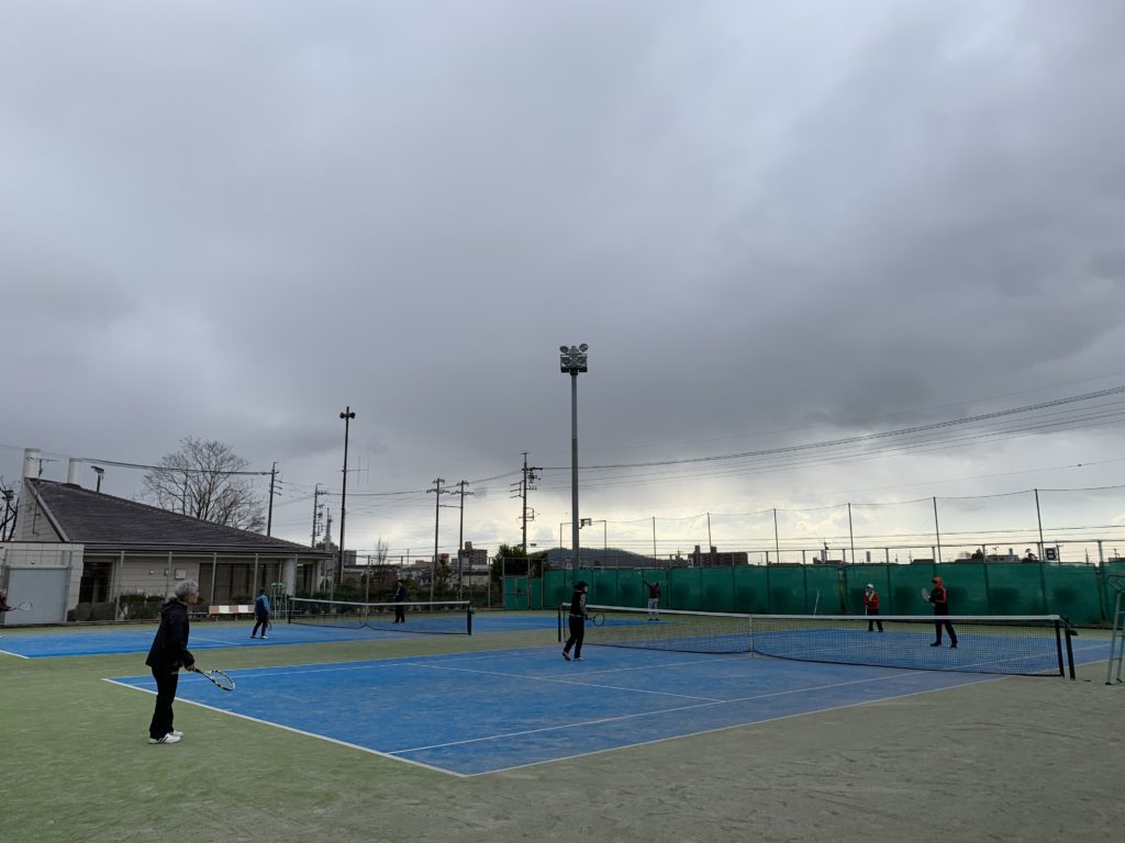 小雨と風のある中を震えながらプレーを始めましたが、風でボールが動きラケットに上手く合わない…… それでも楽しくプレーできました!皆さんありがとうございます!