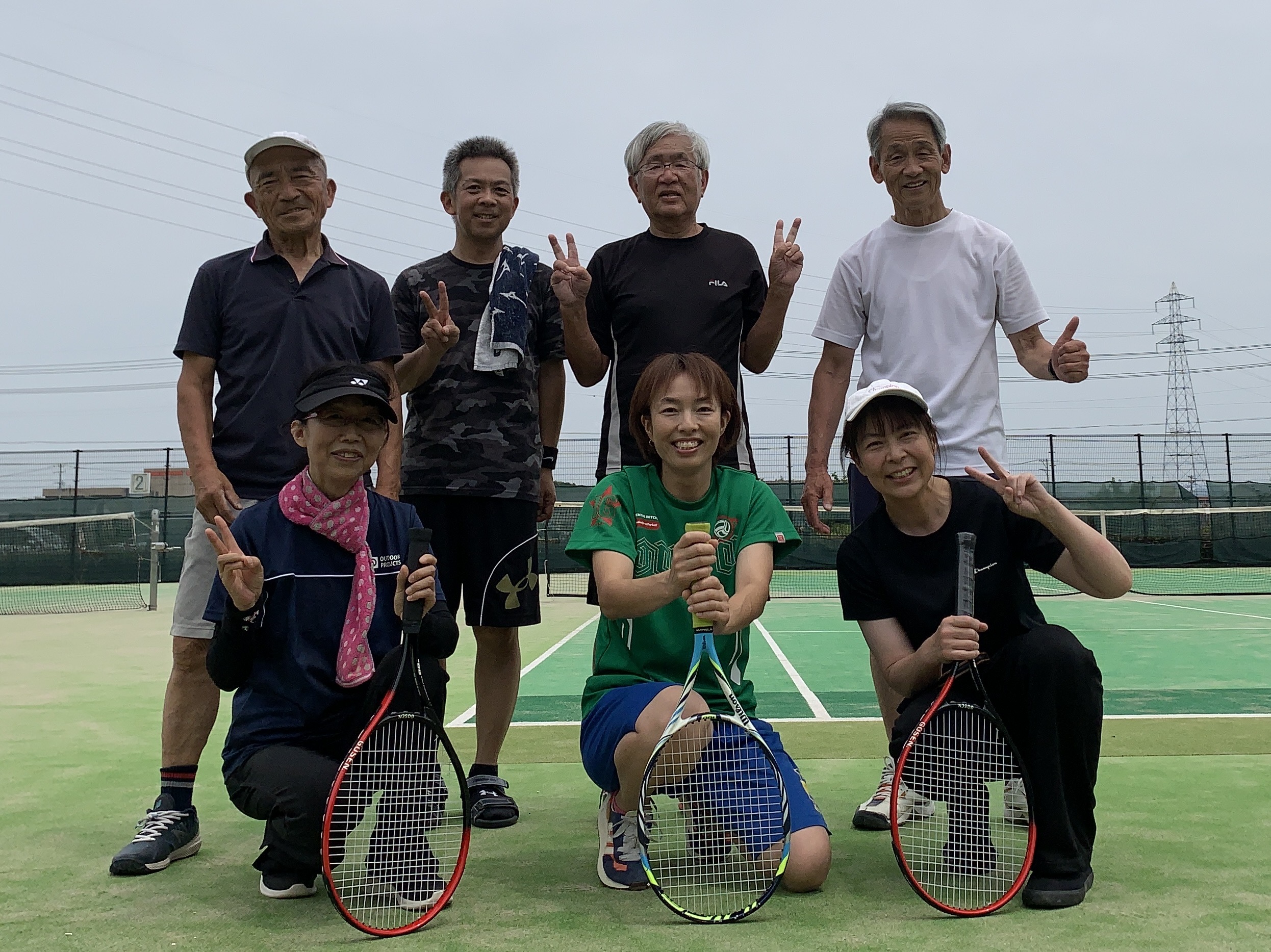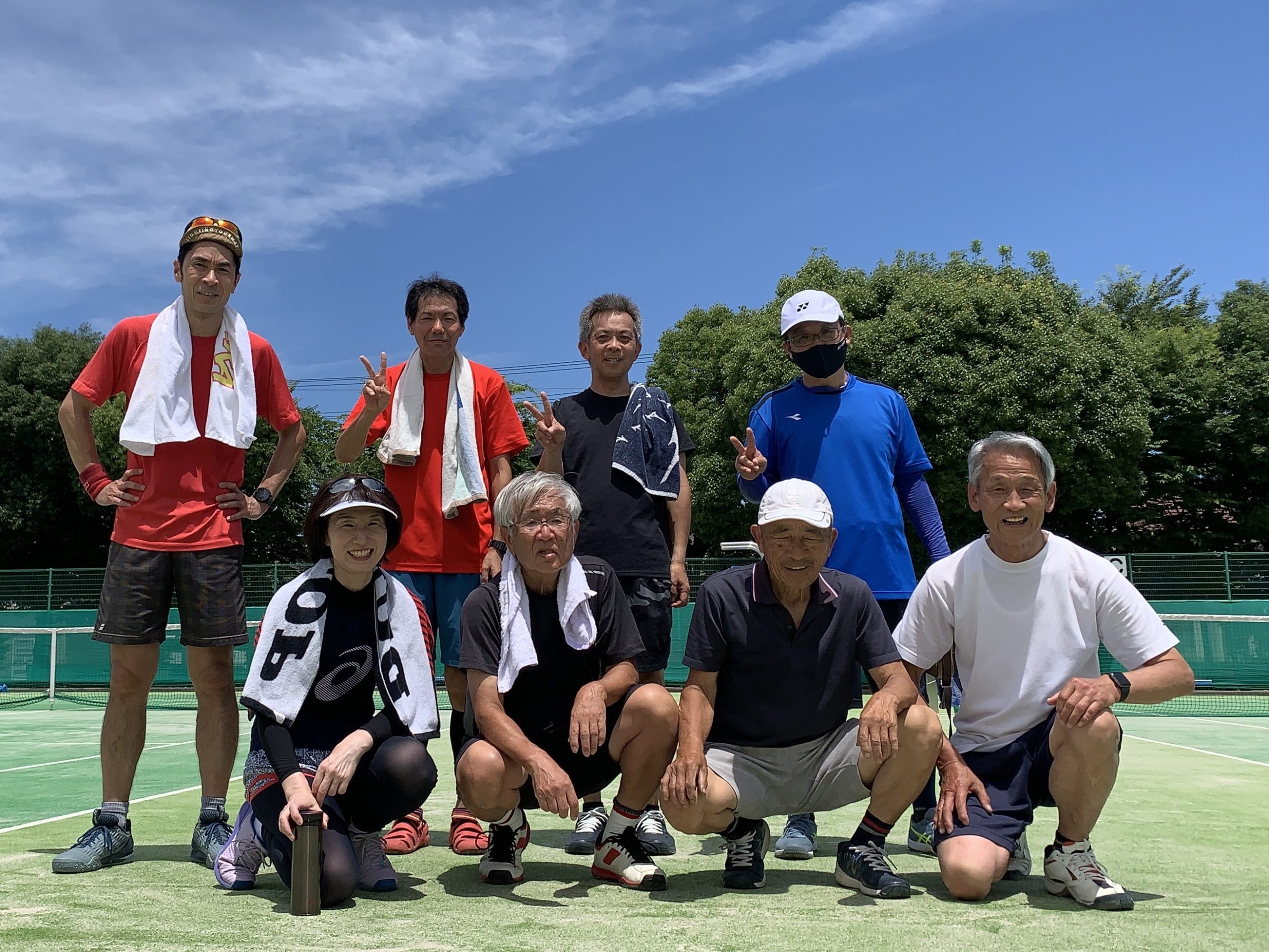 6/4-25 ULTC レポート 6月25日(日)は川島テニスコートでのプレーです、皆さんありがとうございます! 6月18日(日)は大口町コートでのプレーで、隣のコートでプレーされていた皆さんとご一緒です! 嬉しいですね! 6月4日(日)は春季テニスのシングルの大会が開催され、参加の皆さん素晴らしいプレーありがとうございます!